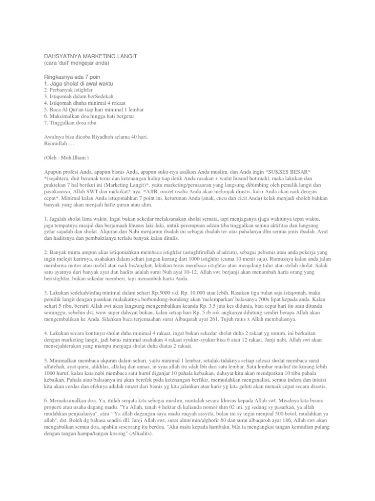 Jadi marketing langit itu berwirausaha melalui jalan allah , tentu saja cara ini akan mendatangkan keberkahan.